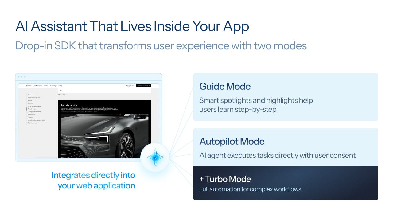 Developed an AI agent SDK that guides users within websites and automates tasks (especially elderly users who encounter mental barriers and educational gaps making digital tasks nearly impossible alone). Was responsible for overall UI/UX design and frontend development. Composed business narrative/direction and presentation structure in English.